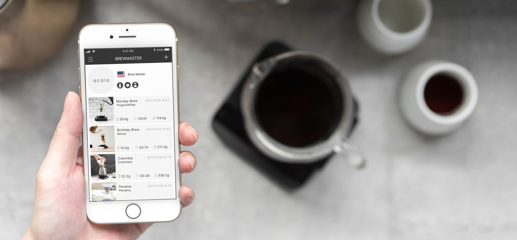 Acaia Coffee App: Available on iOS, Android & Amazon China.